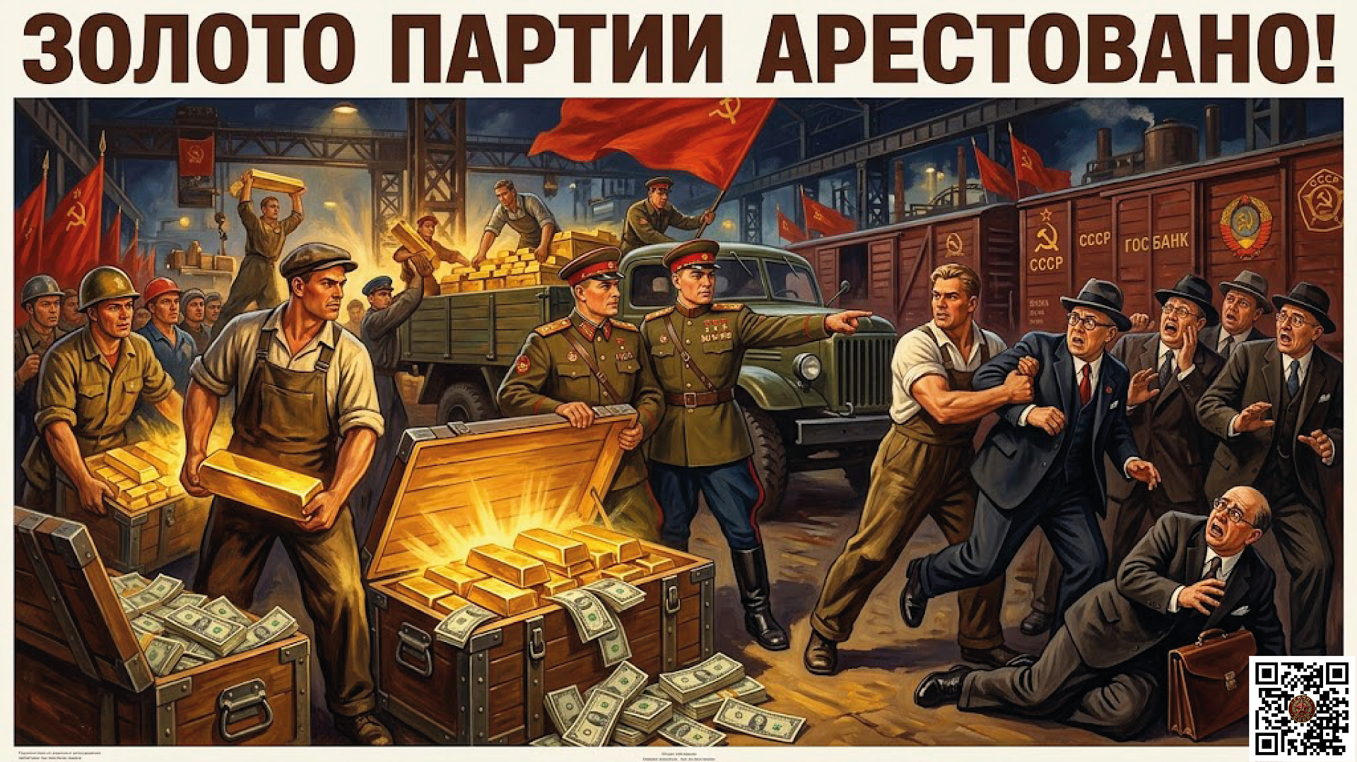 На 1992 год из возникших реалий, давайте так, из возникших обстоятельств и действий или, скажем, бездействий ЦК КПСС в отношении 18,5% в общем и неделимом достоянии СССР, когда продолжатели РСДРП объявили о своем желании (еще раз подчеркиваю, они готовы были) в пользу советов прекратить свои права на титул, который был наделен им, дан на титул 18,5% в общем и неделимом достоянии СССР. И было оформлено намерение получить его стоимость этого титула. Исключительно, кстати, золотом, драгоценными камнями и в иностранной валюте, это в долларах США, кстати, на заграницу, где там были выписаны счета, и в погашении, и как отступной за все полученное РСДРП. Где, товарищи, переучтенные из активов и аваров СССР, как накапливаемые для вот этих целей КПСС для передачи против требования за упразднение права вот этих титулов РСДРП, КПСС в пользу чрезвычайных военных властей Советского Союза и акцептовавшего его стоимость по выплатам и обязательствам, где было предоставлено КПСС… Теперь будьте внимательны: до 2023 года право осуществить публичное и правовое получение средств, которое КПСС, кстати, нарушило и не исполнило вот эти обязательства, после чего титул и права КПСС стали подлежать старению и аннулированию. Вот как. А стоимость вывезенного из Советского Союза золотого запаса под эгидой КПСС подлежит аресту, подлежит изъятию, подлежит конфискации и экспроприации, если хотите, или национализации в пользу Советского Союза.